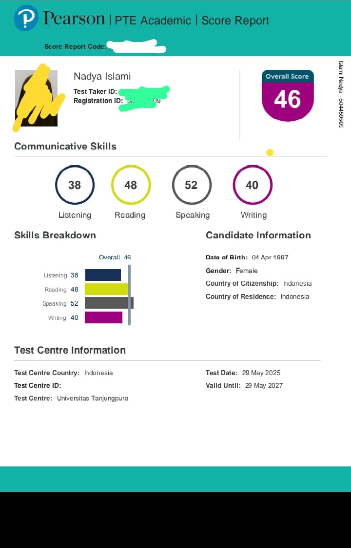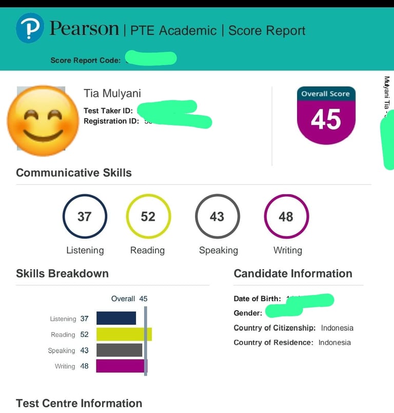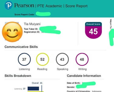 problemku sebelum ka Sufi waktu itu zoom soal pte awalnya mau tes ielts (karna buatku akses tempatnya deket ada di Bandung, di bandingkan PTE) dan setelah ada yg iklanin PTE dan memberikan 1, 2 contoh writing PTE jadi paham ohh semudah itu kali ya PTE dibandingkan ielts, walaupun harus keluar kota, ya udah jadi nya milih PTE masalahnya adalah di keuangan sejak saat itu masuk les PTE hanya tau nya di 1 lembaga saja di group yg mempromosikan, dan karena syarat masuk les pte harus nilai 28 mock test, akhirnya mengurungkan niat untuk ga join les di lembaga tsb. Sejak saat itu mock test awal saya dpt 11, otomatis ditolak😂dan salah satu teman LT1 menyarankan mending uang tes basic dan pte nya untuk real test aja dan les LT dgn coach LT2 akhirnya join deh😍🫵🏻 alhasil mock test saya meningkat jadi 24, dan tadi dapet 37 🥹mungkin waktu itu saya diremehkan kali ya jadi ga bisa join, skrng klo ada tugas pun lgsg tak garap demi masa depan yg cemerlang🤲🏽